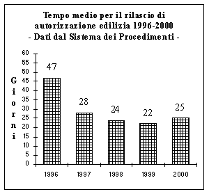 ANDAMENTO TEMPO MEDIO PER IL RILASCIO DI CONCESSIONI E AUTORIZZAZIONI EDILIZIE 1996-2000
