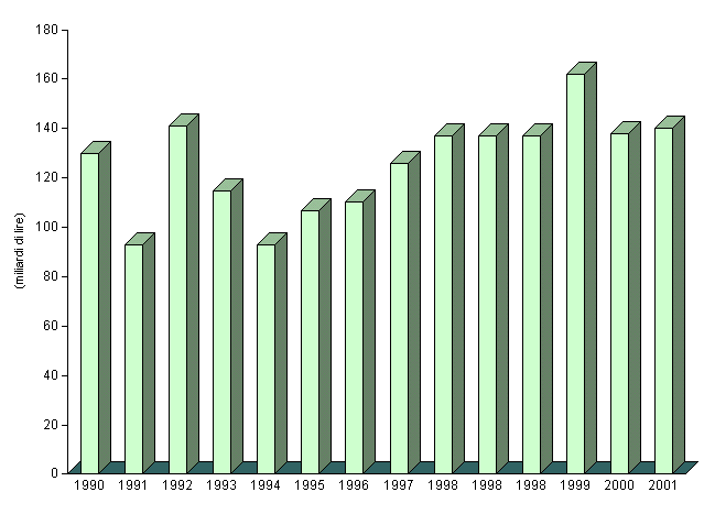 Ammontare delle liquidazioni in conto capitale dal 1990 al 2001