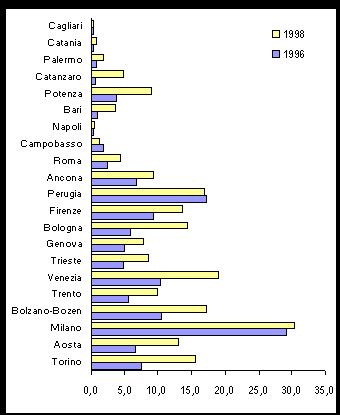 Nel 1998, la quasi totalità dei comuni dispone di centraline di monitoraggio della qualità dellaria.