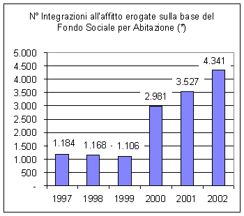 (*) Dal 2000 ai contributi del Comune si sono aggiunti quelli della Regione (**) comprende emergenze abitative