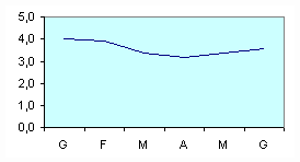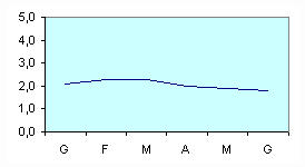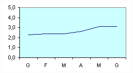 Sul versante locale l'andamento dell'inflazione nel corso del primo semestre 2001 mostra una sostanziale stabilità. I valori oscillano, infatti, tra il +2,8% del mese di marzo e il +3,1% di gennaio, aprile e maggio. Come evidenziato dal grafico, l'andamento dell'inflazione bolognese è del tutto analoga a quella registrata a livello nazionale e per ben quattro mesi (febbraio, marzo, aprile e giugno) i valori coincidono. |