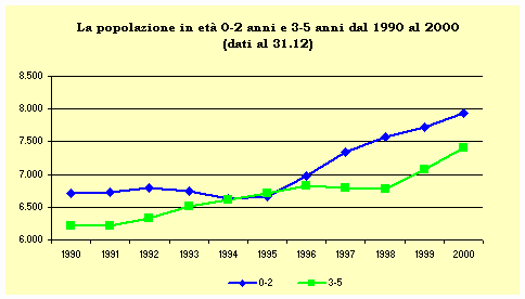 L'aumento delle nascite caratterizza positivamente la dinamica demografica di Bologna negli ultimi anni. L'ingresso nel 2000 di un contingente di nati superiore a quello dello scorso anno contribuisce ad ampliare anche l’utenza potenziale dei nidi di infanzia. I residenti compresi fra 0 e 2 anni (vedi Tav. 10) sono passati, infatti, dalle 7.714 unità di fine 1999 alle 7.945 del 31.12.2000 (+231 unità; +3%). |