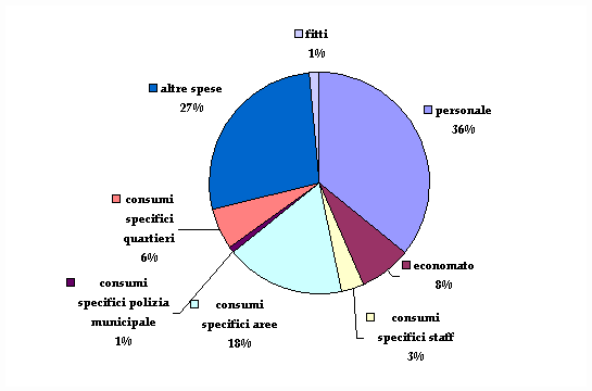 L’andamento delle spese economali subisce nel 2003 un aumento pari al 6,3%. Tale aumento riflette sia un aumento dei prezzi d’acquisto dei beni economali, dovuto all’andamento inflazionistico, sia un aumento delle quantità acquistate necessario a sostenere l’incremento dei servizi offerti dall’Amministrazione. In particolare, le voci che subiscono degli incrementi sono le assicurazioni, l’acquisto viveri per il Servizio Produzione Pasti, le spese postali, il riscaldamento e la telefonia, mentre vi è una riduzione di costi legato all’affidamento a Seabo S.p.A. della gestione dei servizi cimiteriali.