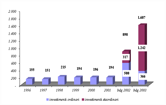 i dati relativi al 2002 e al 2003 fanno riferimento al budget normalizzato.Tale incremento di spesa è il risultato della combinazione di due fattori principali.
